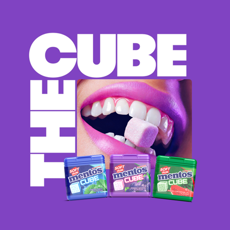 NEW! Mentos Cube - the new soft texture gum! Enjoy a long-lasting burst of flavour in every chew.